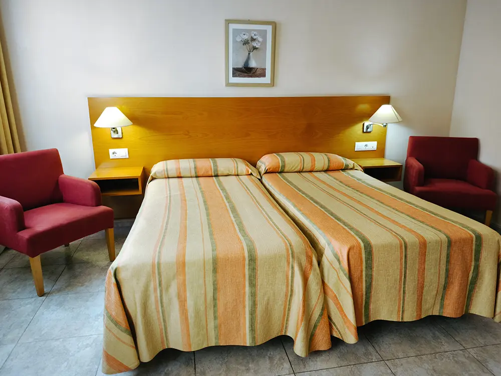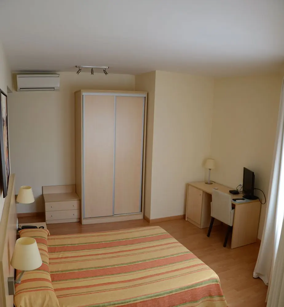 En el Hotel Rostits contamos con habitaciones individuales y familiares, pensadas para adaptarse a todo tipo de viajeros: tanto si vienes solo, en pareja, con amigos o en familia, encontrarás la habitación ideal para disfrutar de una agradable estancia en Castellón. Todas nuestras habitaciones están equipadas con todas las comodidades necesarias, incluyendo aire acondicionado, escritorio, pequeña nevera con agua de bienvenida, sillones con mesita, televisión y baño privado con bañera o ducha, para garantizar confort y descanso durante tu visita.